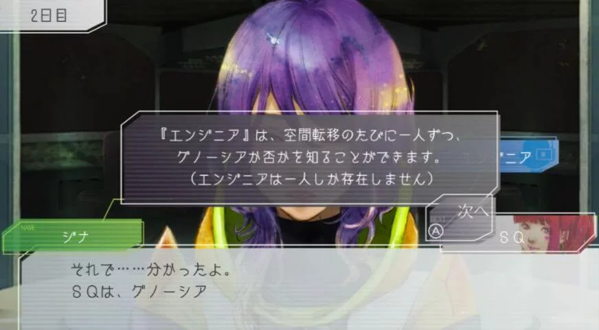 ただし登場するキャラクターの数や各キャラクターの役割(人間かグノーシアかも含め)、キャラクターたちの関係性も若干変わります。 このループを繰り返しながら、主人公は登場人物の秘密を探り、このループの謎を解き明かしていきます。